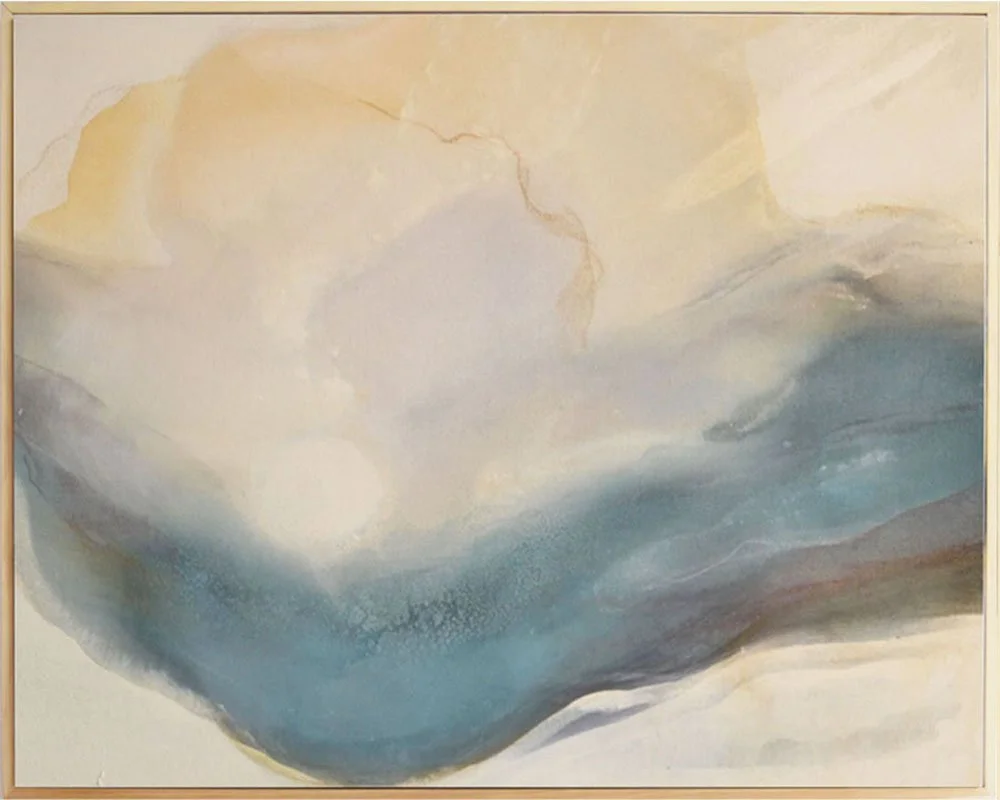 Prier’s practice unfolds through the language of fluidity and release. Working primarily with poured pigment, she navigates the space between intention and surrender, allowing gravity, viscosity, and time to participate in the formation of each composition. The resulting works evoke atmospheric horizons, sedimented landscapes, and luminous thresholds — forms that appear to emerge rather than be constructed.